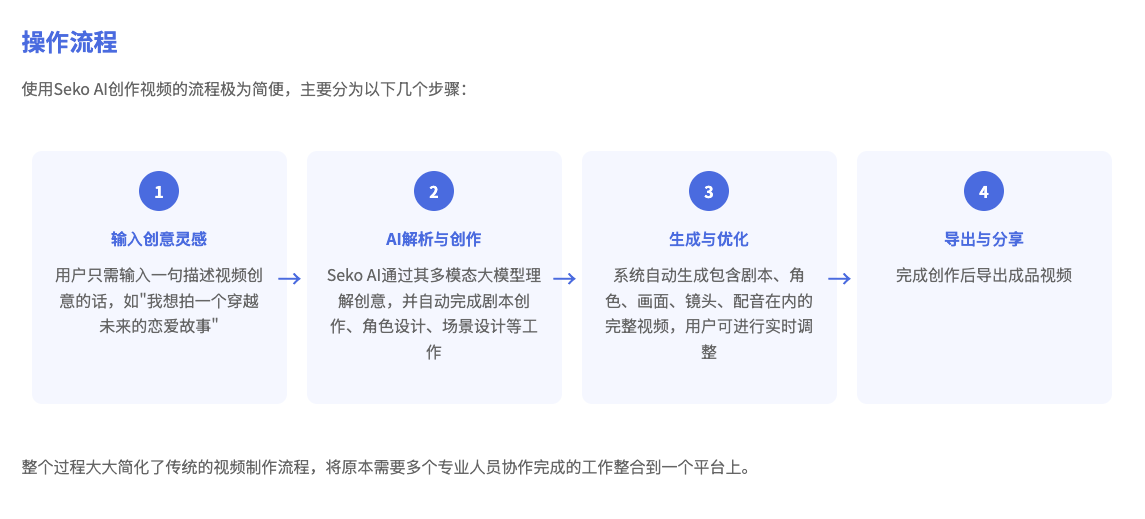 Seko AI作为商汤科技推出的多模态短片创作Agent,代表了AI视频创作工具的重要里程碑。它通过实现从创意输入到成片输出的全流程自动化,彻底改变了视频创作的方式,将专业级视频制作能力民主化,使更多人能够实现自己的视频创作梦想。