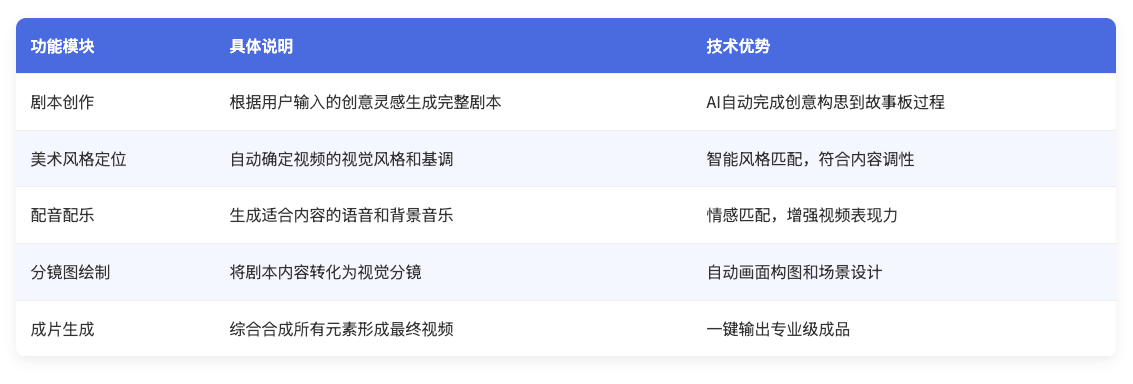 这些模型协同工作,实现了从剧本创作到最终视频生成的全流程AI化。